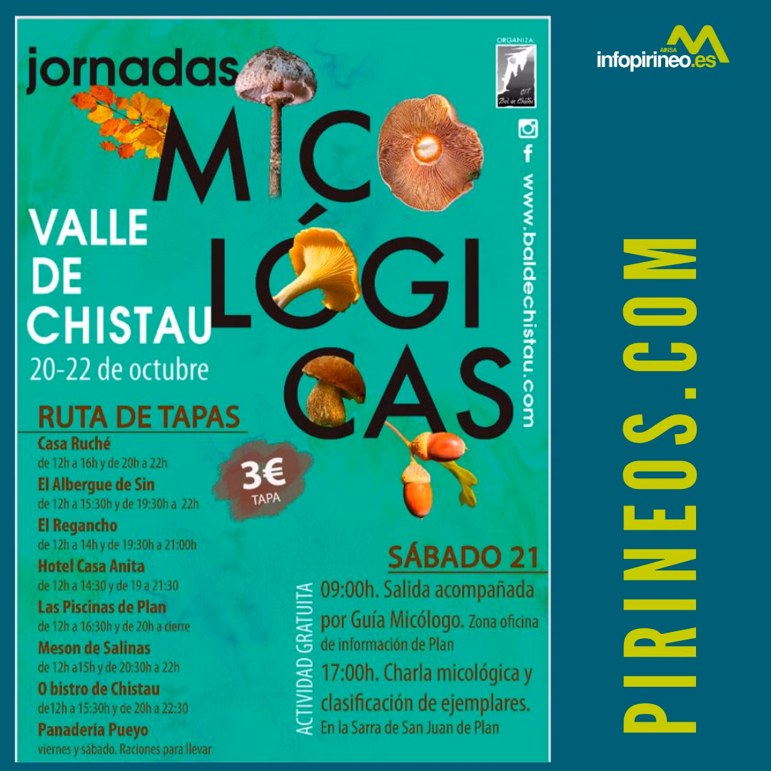 Durante estos días y por 3 Euros la tapa podremos deleitarnos de la Ruta de Tapas Micológicas, que preparan distintos establecimientos del Valle de Chistau con el fin de disfrutar de las suculencias que nos ofrecen setas y hongos que podemos encontrar en nuestros bosques.
